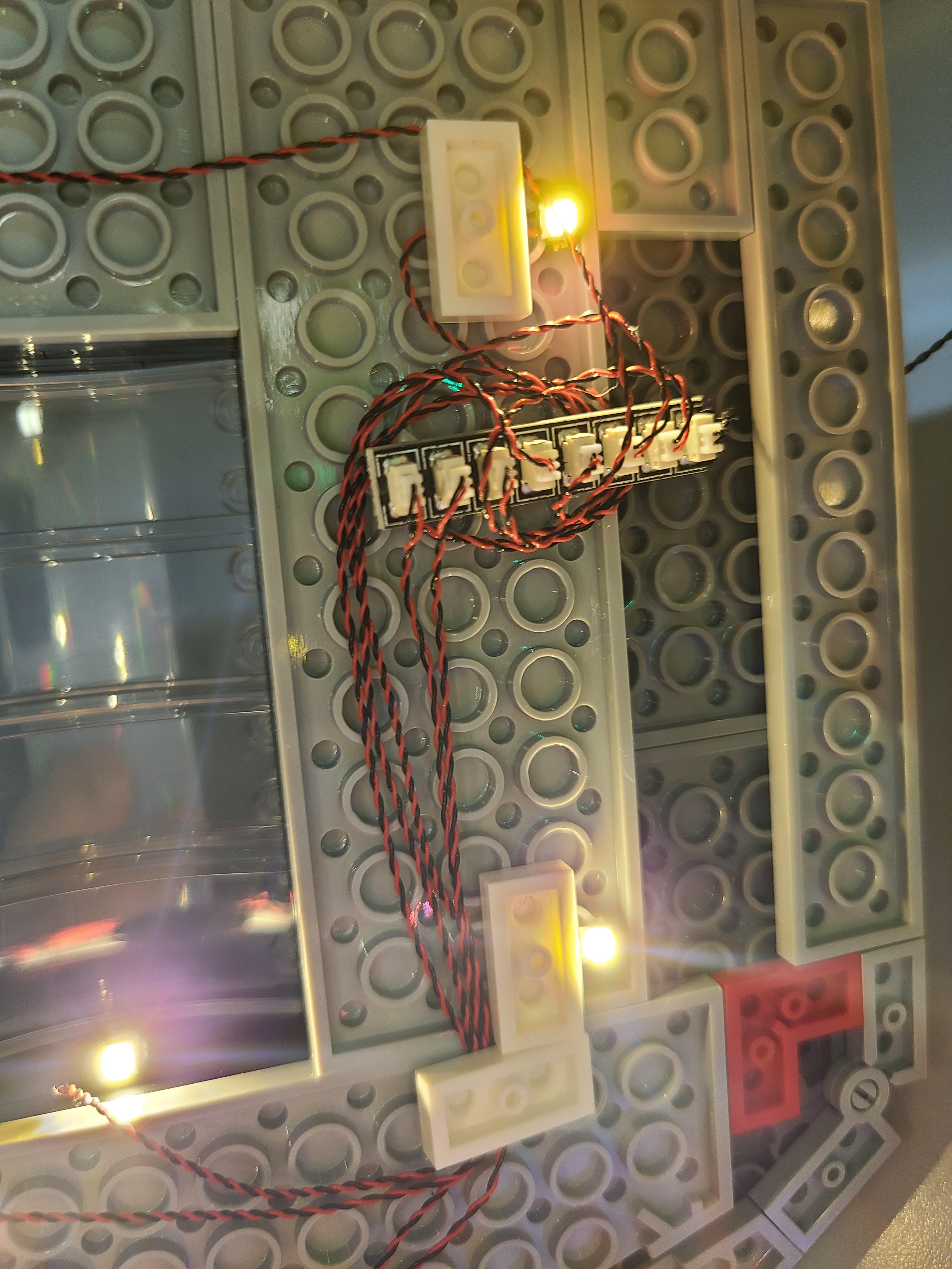 각각의 LED 선들은 하나의 커넥터에 연결되는 구조이다. 층간 분리시 간섭이 발생할 수 있다. 선들의 작업이 깔끔하진 않다.