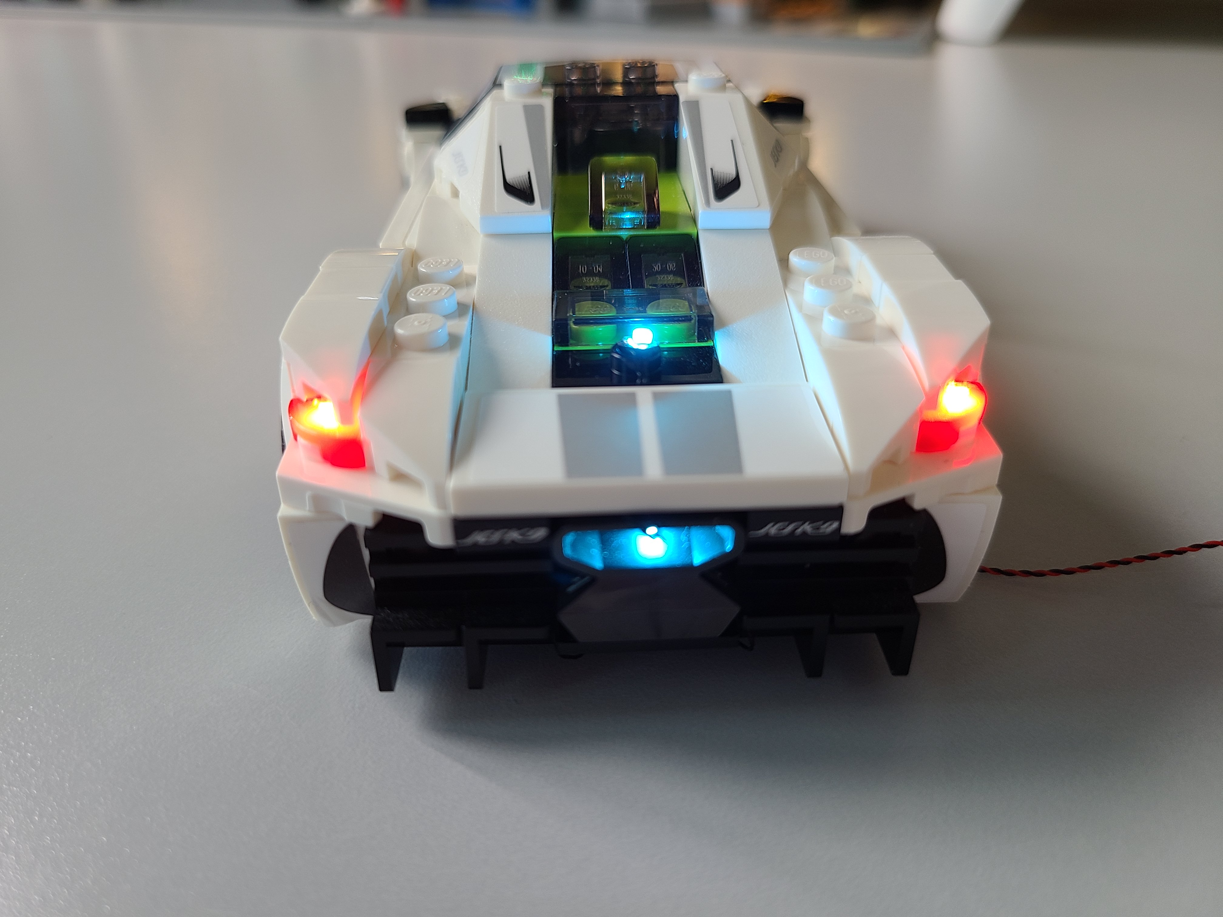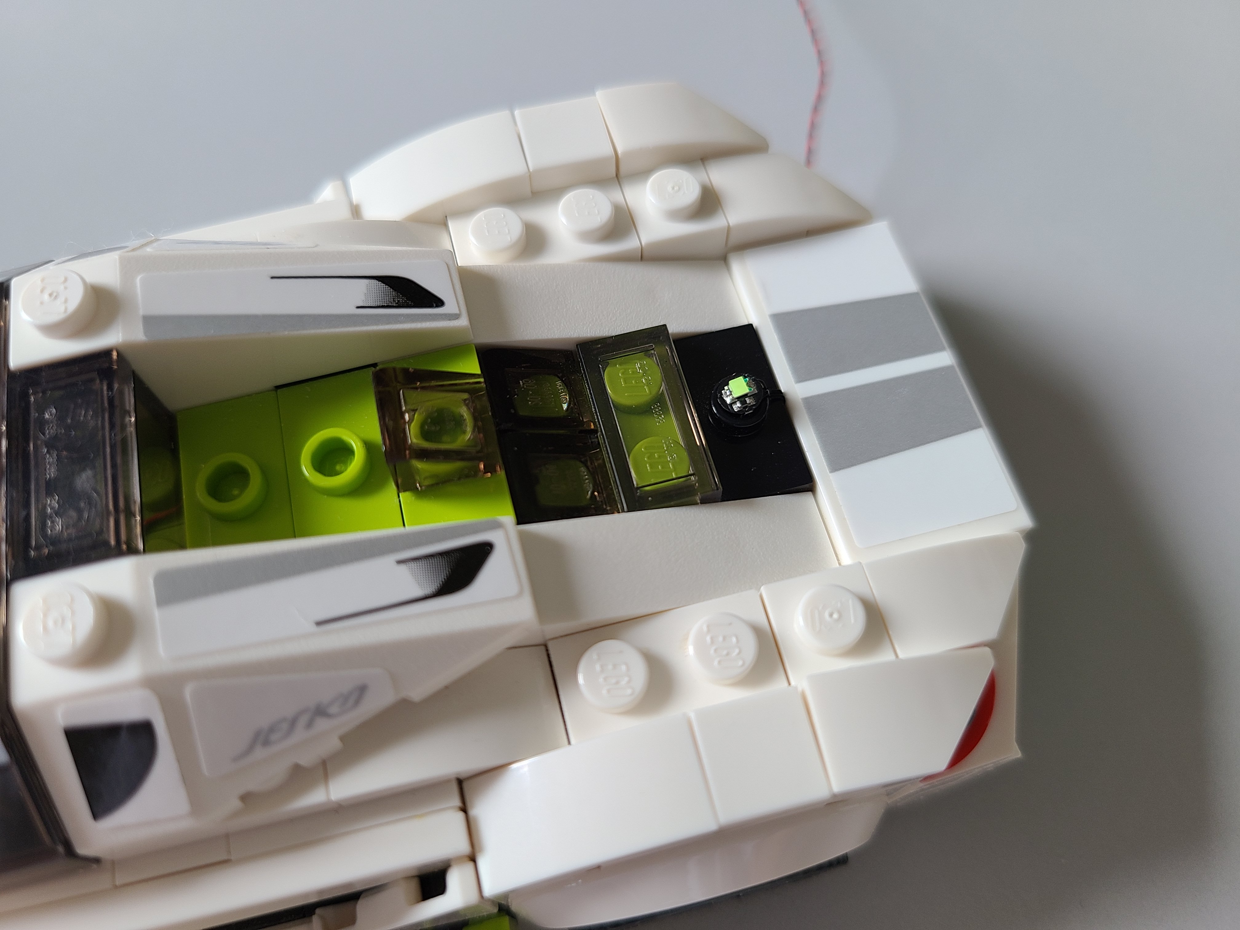 LED는 총 7개로 구성되어있다. 전면 헤드라이트 2개, 후미등 2개, 운전석 1개, 배기구 1개, 날개 밑 부분 1개로 구성되어 있다.