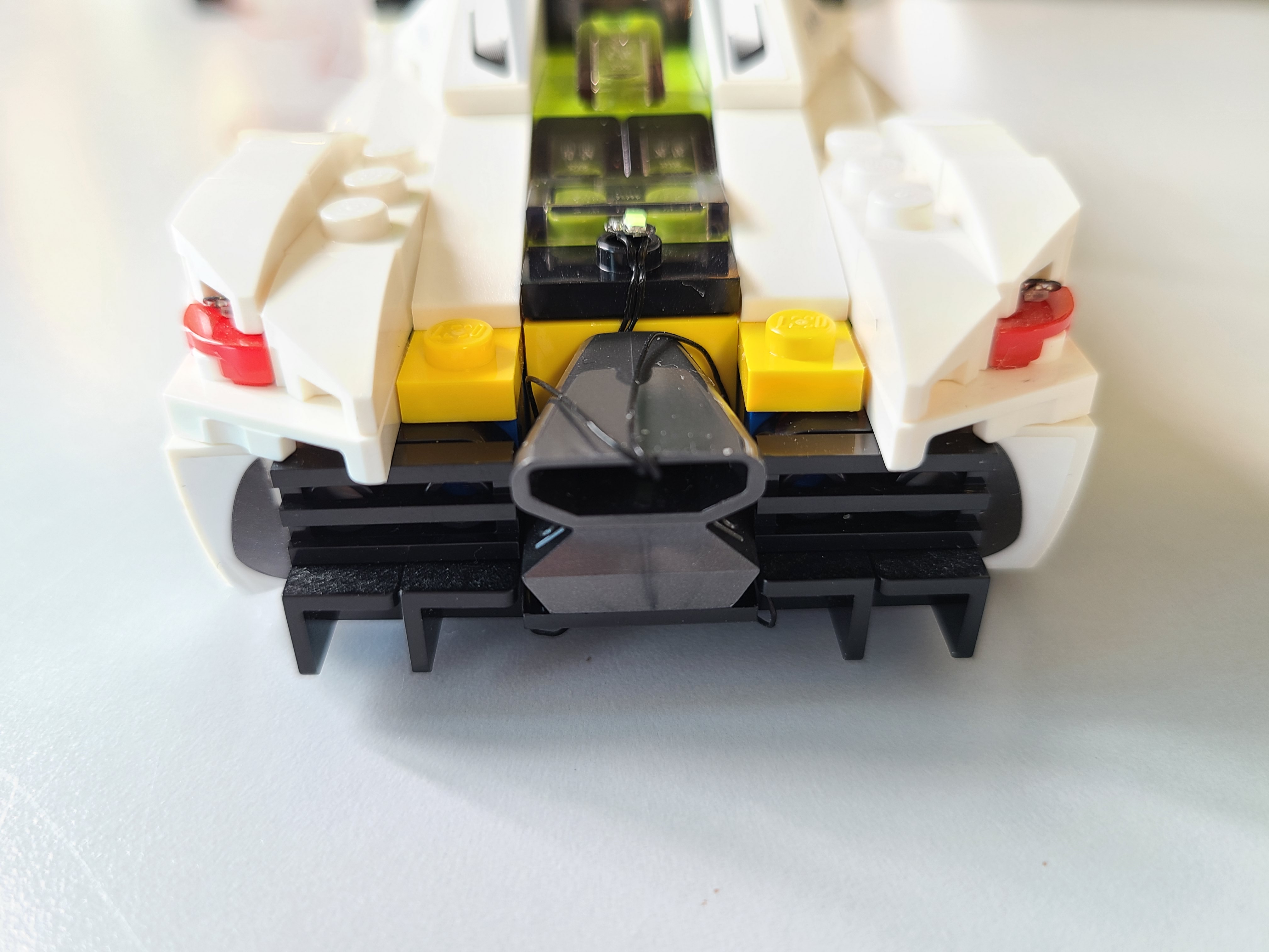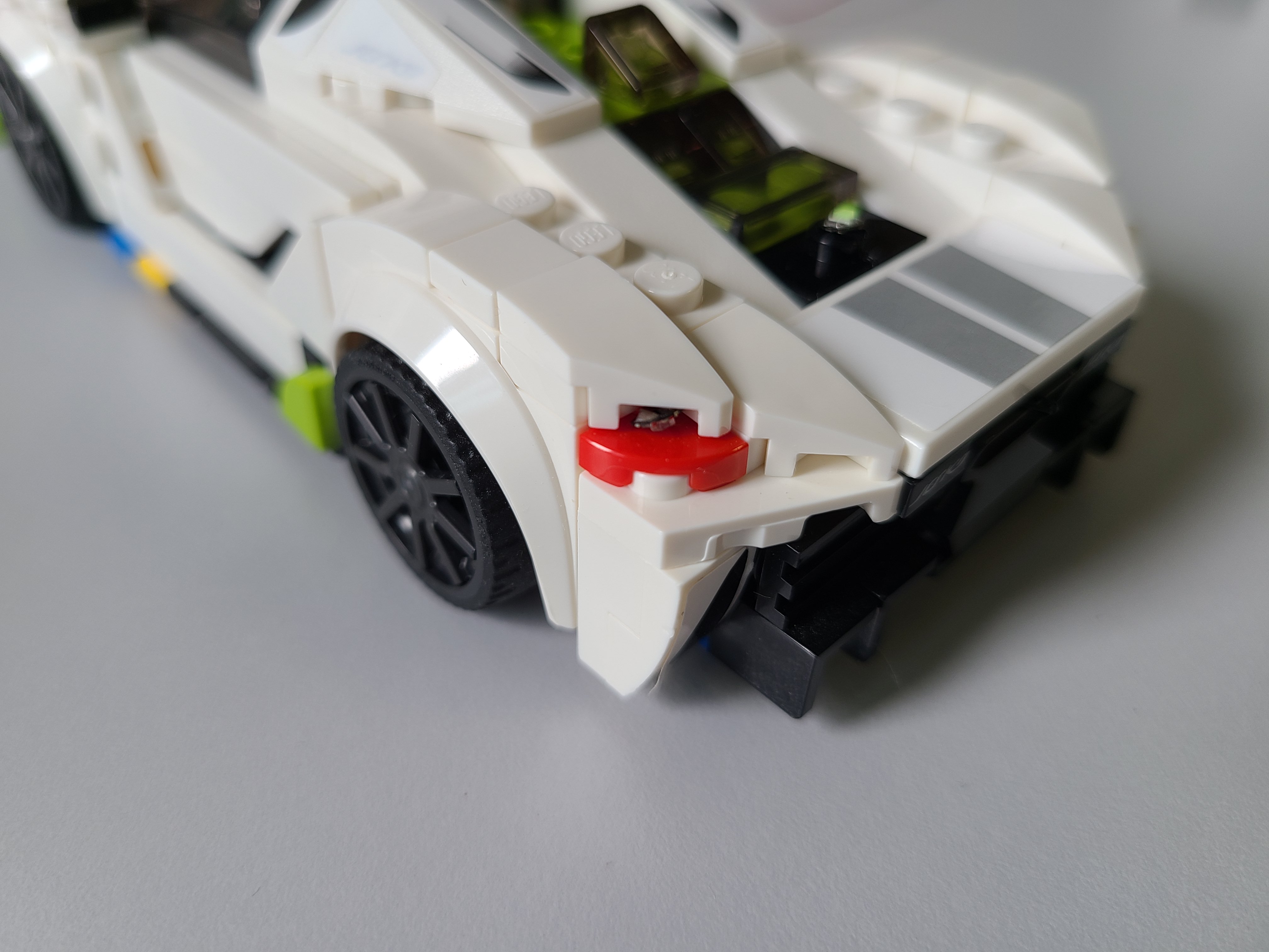 날개 밑부분, 배기구, 후미등 LED 작업의 난이도는 어렵지 않으며, 선이 얇아 브릭 결합에도 크게 어려운 점이 없다.