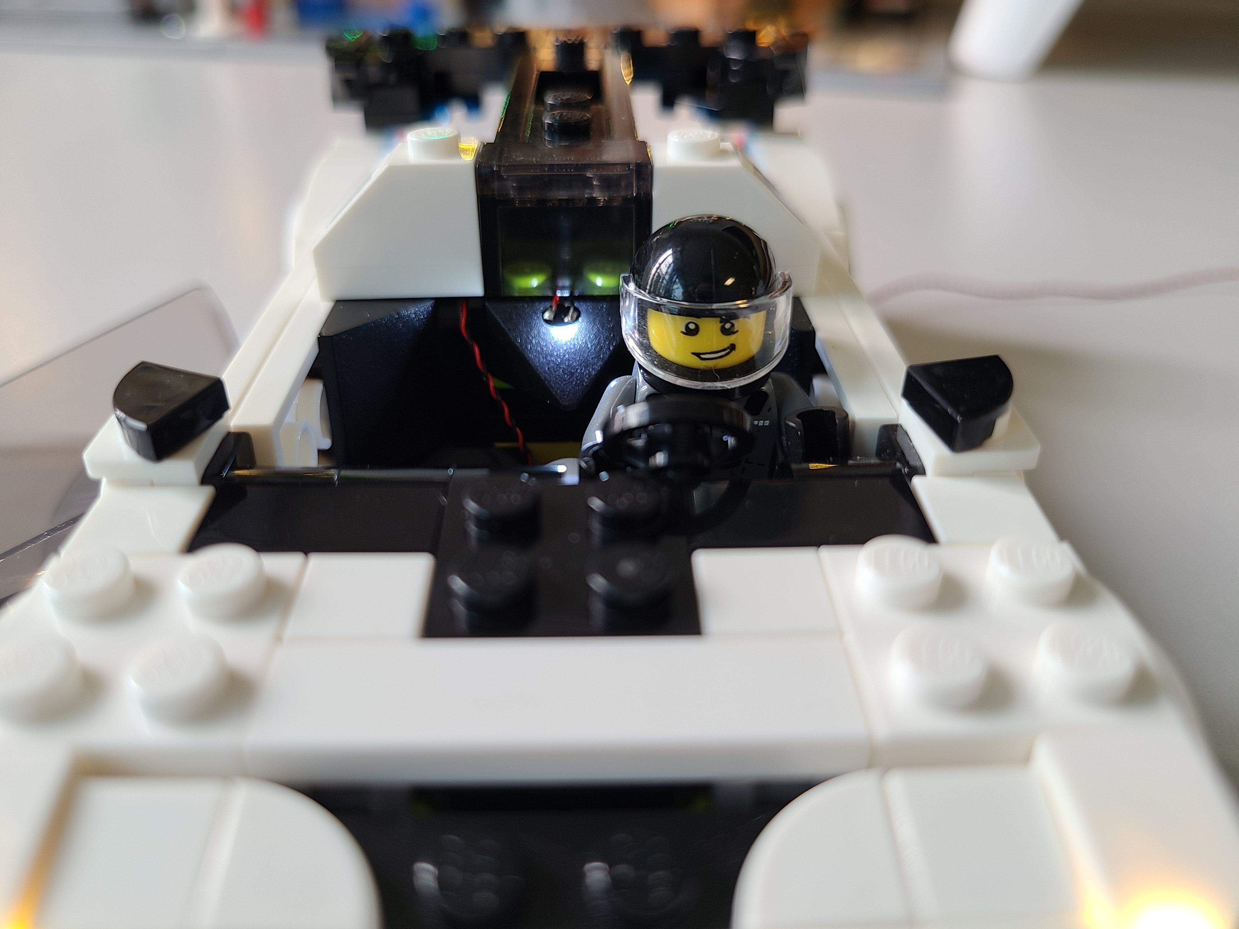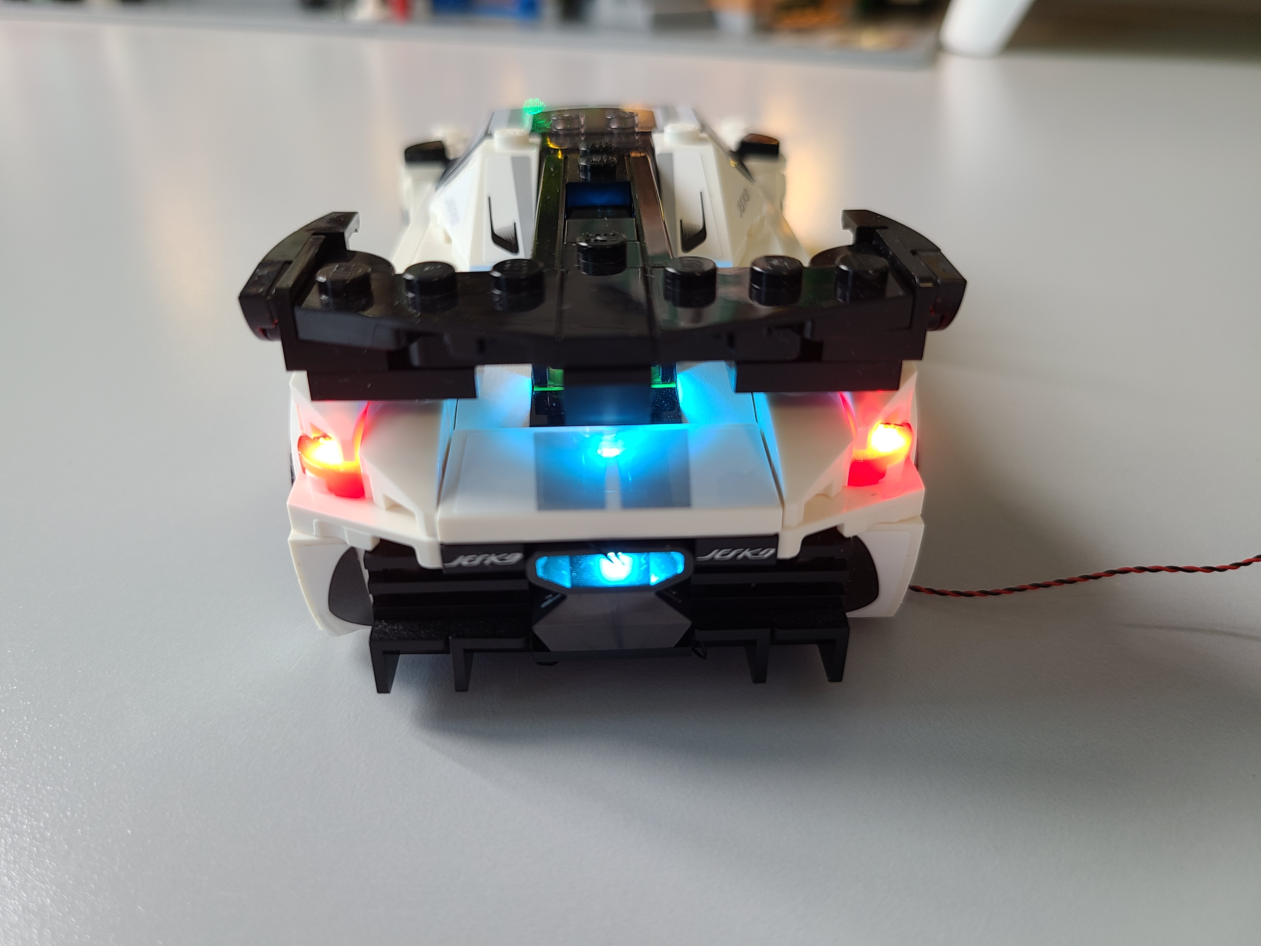 LED는 총 7개로 구성되어있다. 전면 헤드라이트 2개, 후미등 2개, 운전석 1개, 배기구 1개, 날개 밑 부분 1개로 구성되어 있다.