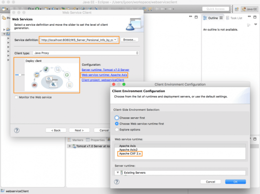 – Web service runtime : 해당 글자를 클릭하여 처음 설정해주었던 CXF로 변경한다.