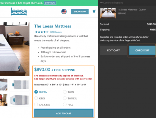 사이즈 체크 후 ‘add to cart’하면 바로 ‘check out’ 할 수 있다.